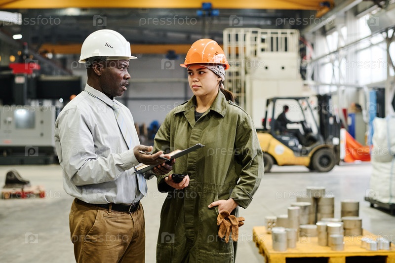 Обсуждение рабочих планов в условиях промышленной фабрики