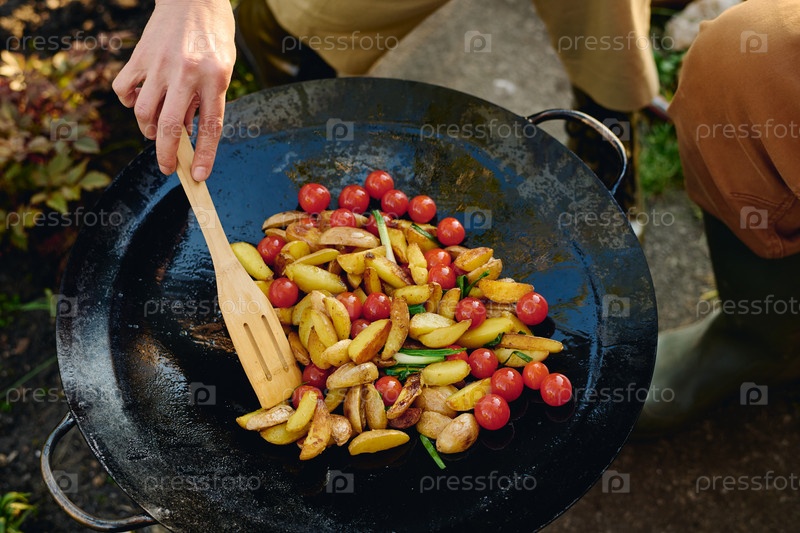 Горячая сковородка с жареным блюдом