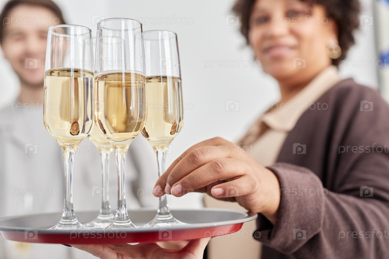 Шампанские бокалы на подносе во время церемонии открытия