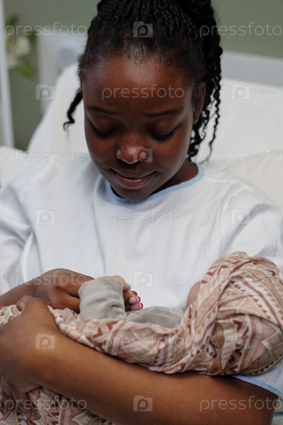 Мать усаживает новорожденного ребенка в роддоме