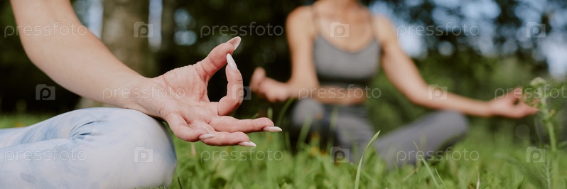 Заголовок женской руки во время медитации