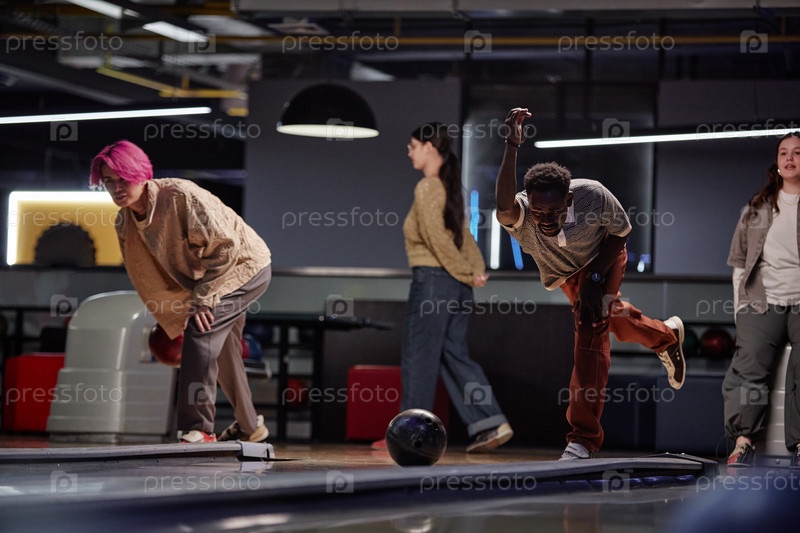 Наслаждаясь игрой в боулинг на современной боулинговой аллее