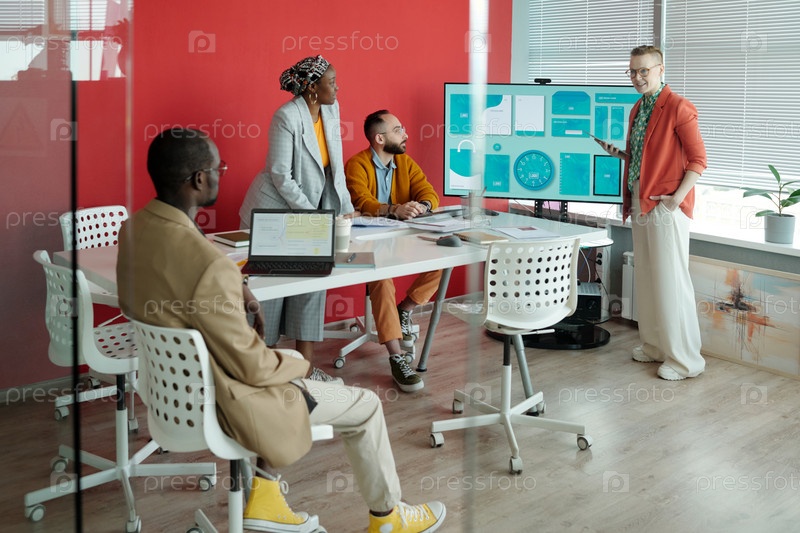 Член команды, представляющий проект во время офисной встречи