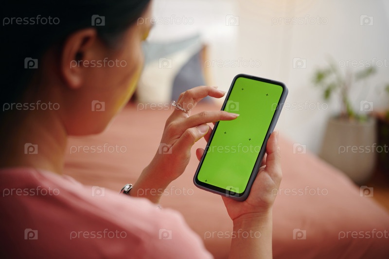 Поддержание смартфона с пустым зеленым экраном в помещении