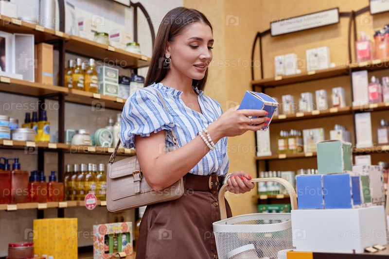 Женщина, смотрящая на кремовую коробку