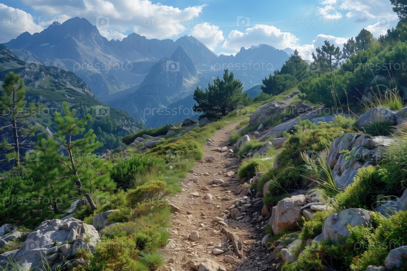 Горная тропа, извивающаяся через сосновый лес в Скалистой местности
