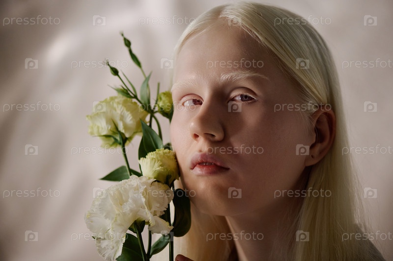 Белокожая девушка с цветами лизиантуса