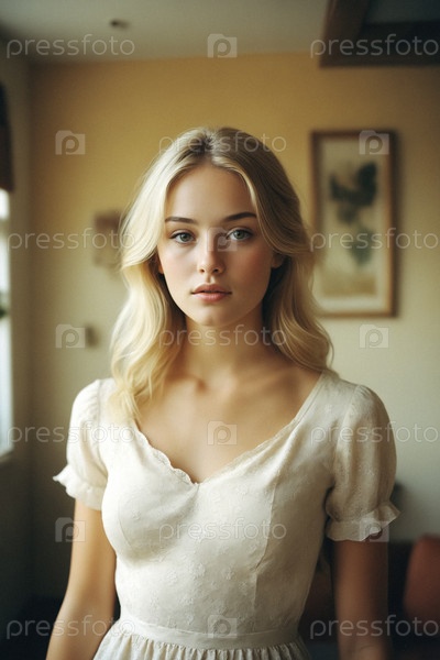 Молодая блондинка с спокойным выражением лица в помещении