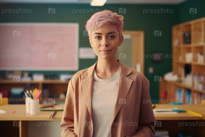 Молодая женщина, работающая в школе AI
