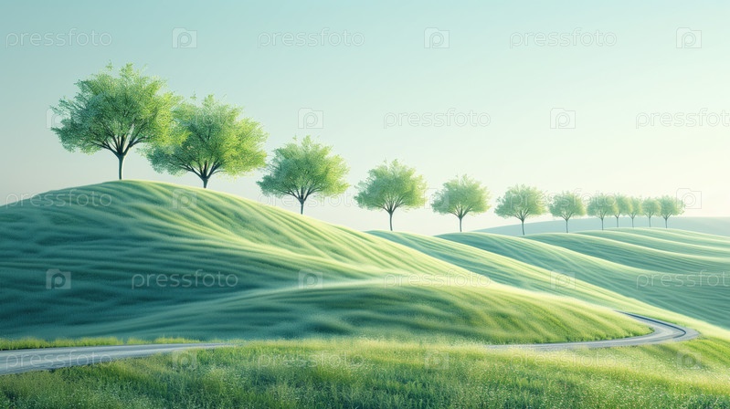 Rolling Hills с пышными зелеными деревьями в летний день