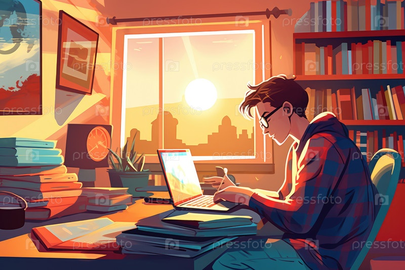 Человек изучает онлайн с помощью ноутбука AI Man