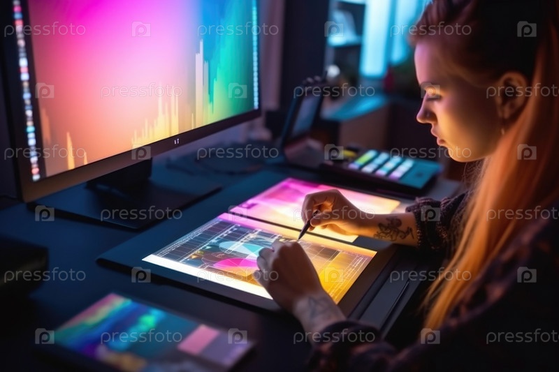 Графический дизайнер, работающий на планшетном компьютере AI