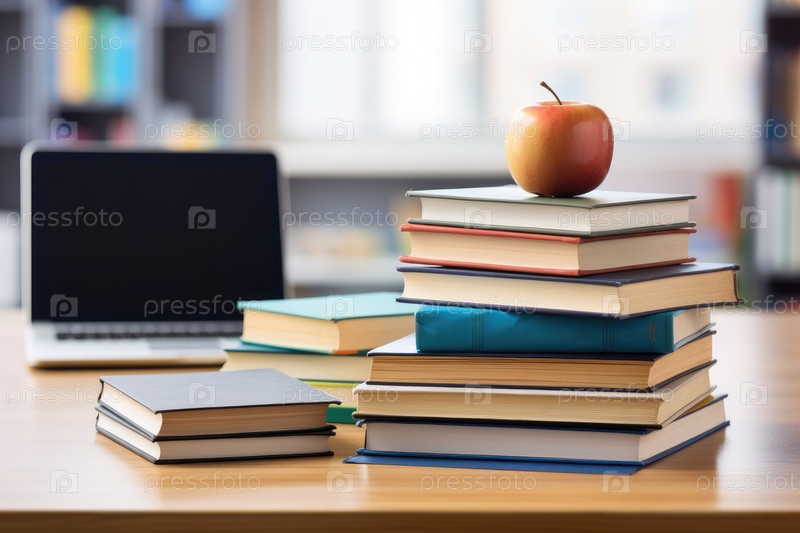 Учебники на столе в школе AI