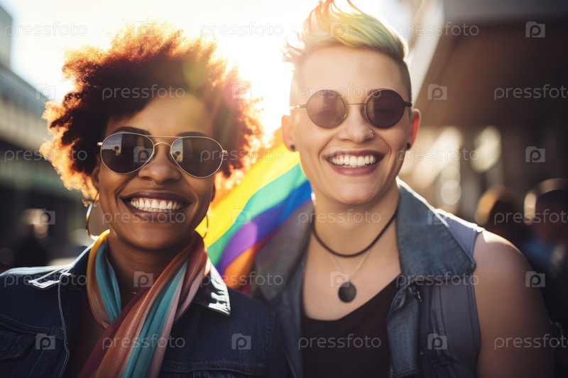 Две счастливые женщины-лесбиянки AI