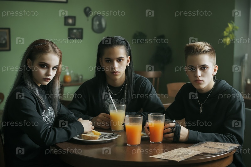 Группа готических подростков в кафе