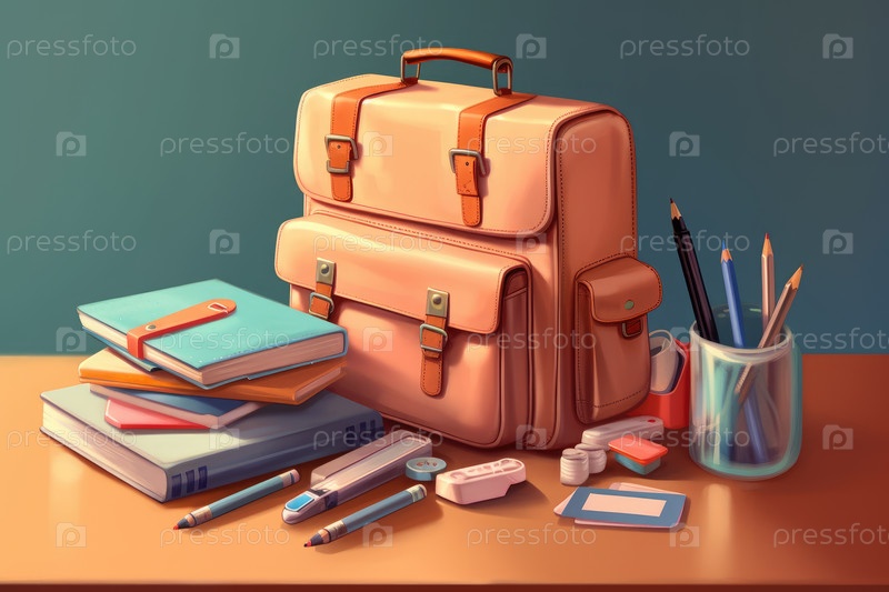 Рюкзак с книгами на столе AI