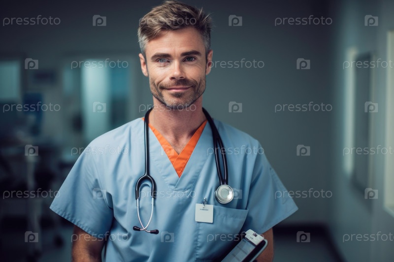 Врач в форме работает на клинике AI