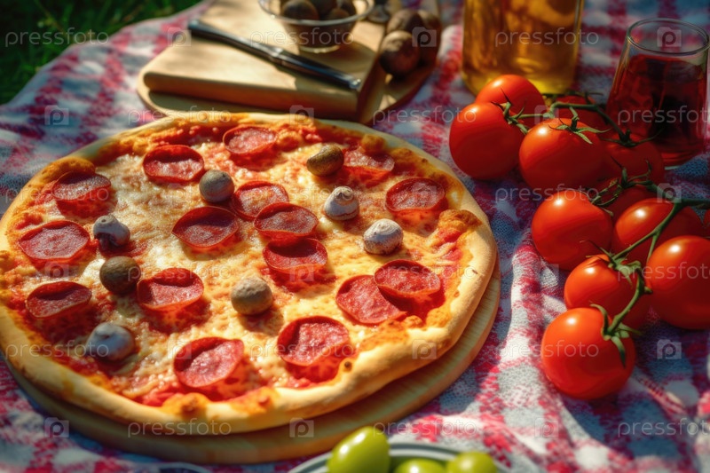 Вкусная пицца с мясом и сыром AI