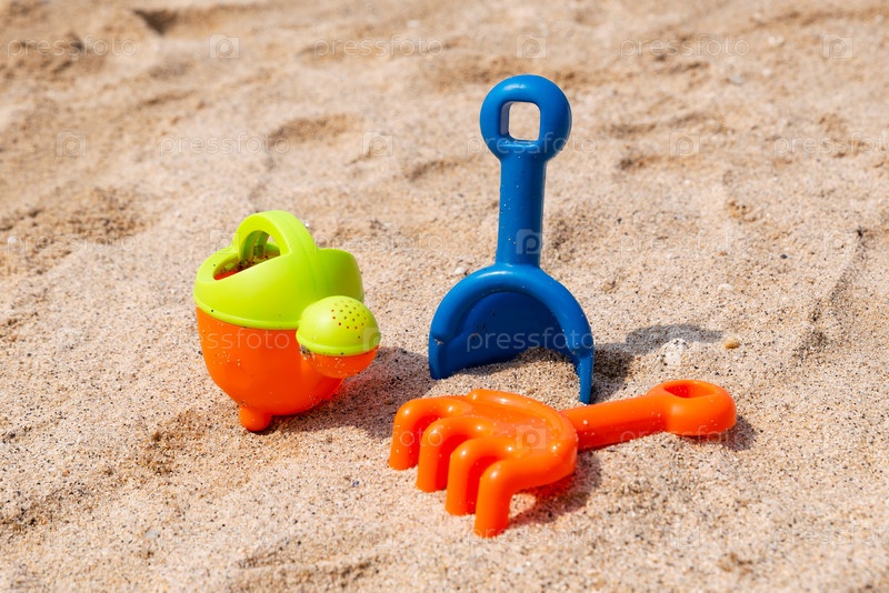 Пластиковый совок, грабли и лейка для игр на пляже