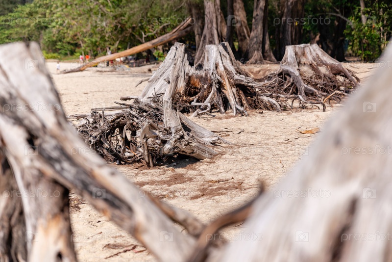 Сухие пни на берегу моря