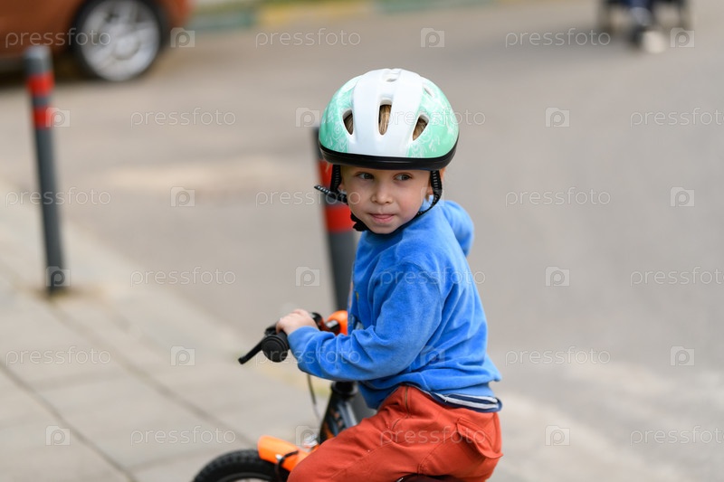 Мальчик едет на велосипеде в летний день
