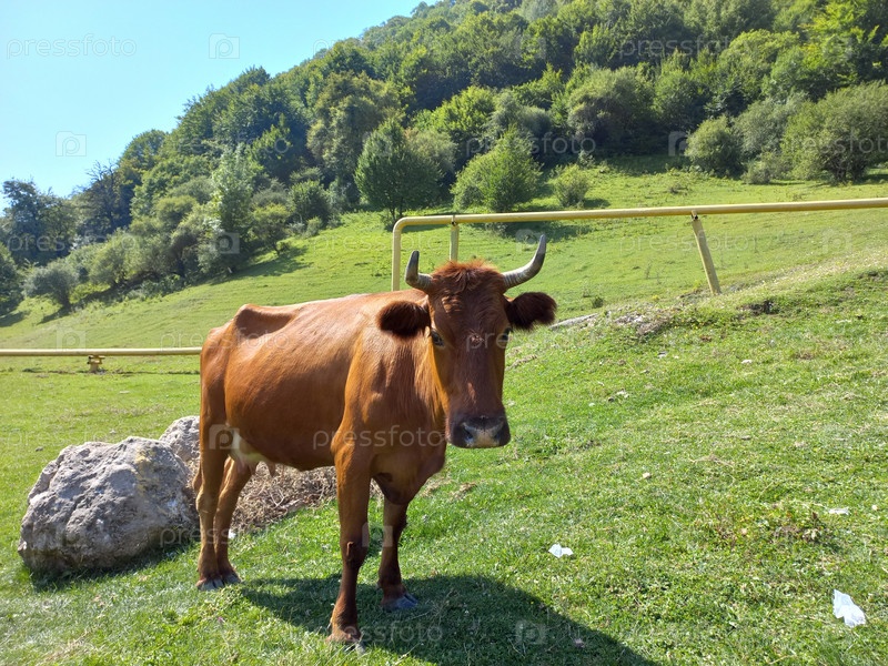 Корова на пастбище. Горы. Чечня