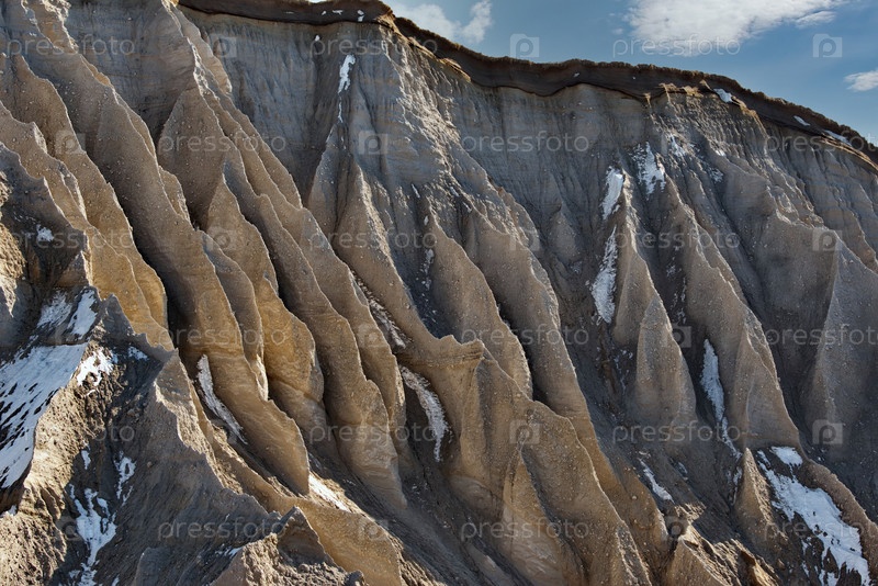 Россия, Дальний Восток, Курильские острова. Одна из главных достопримечательностей острова Итуруп — разрушительные пемзовые горы на побережье Охотского моря