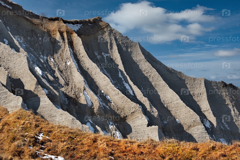 Россия, Дальний Восток, Курильские острова. Одна из главных достопримечательностей острова Итуруп — разрушительные пемзовые горы на побережье Охотского моря