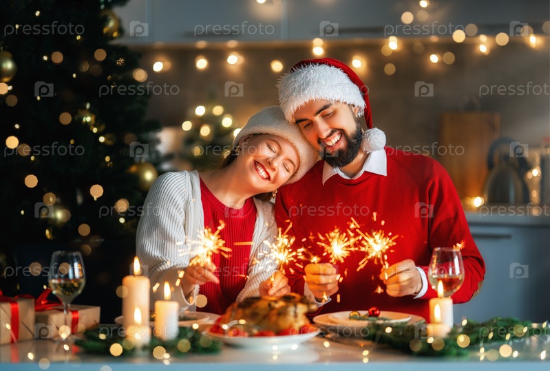 Пара на рождественском ужине