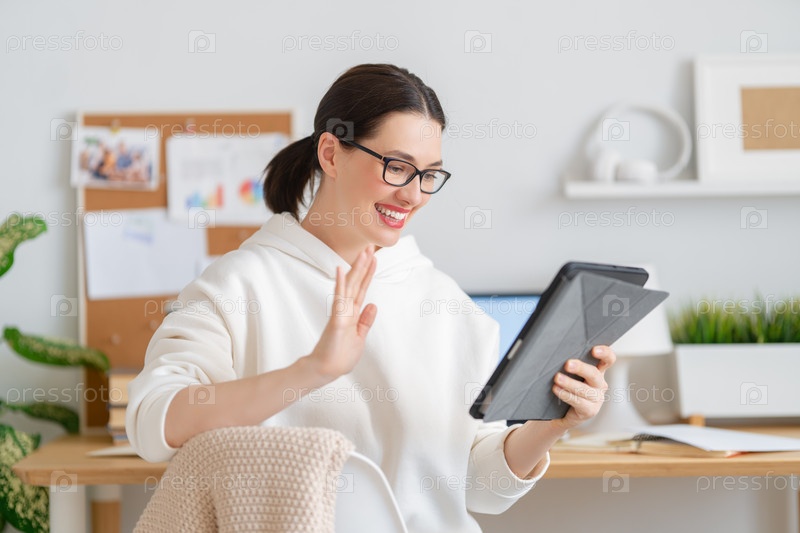Женщина работает на ноутбуке