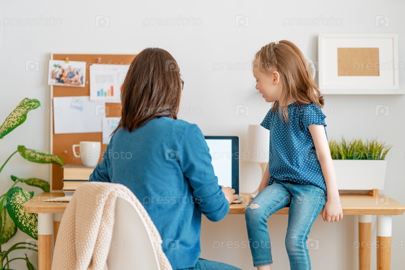 Мать с ребенком работают за компьютером