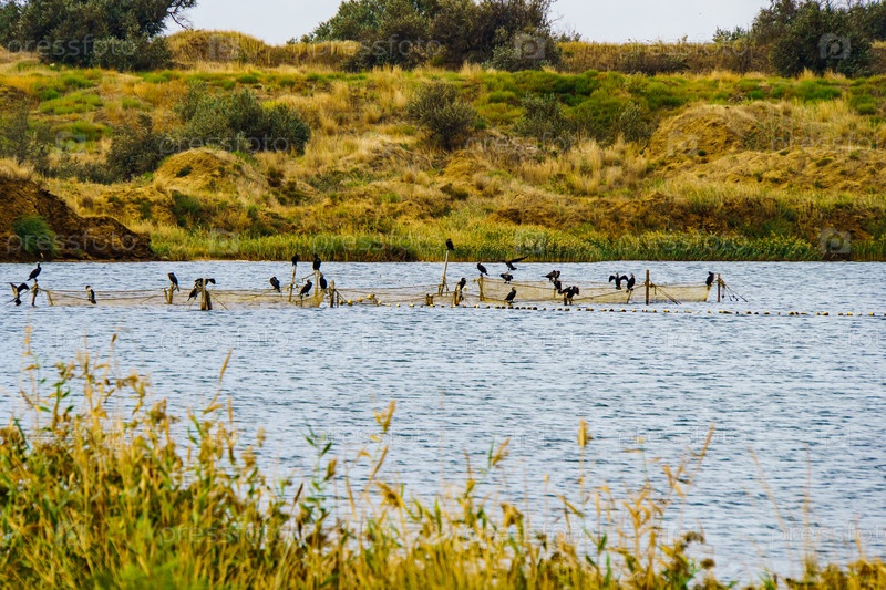 Водный пейзаж. Стая бакланов. Керчь. Крым
