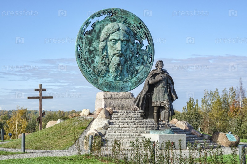 Монумент «Молитва перед боем», мемориал Александру Невскому, солнечный октябрьский день