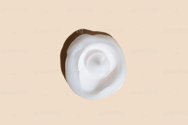 Кремовый мазок белой косметической текстуры крупным планом на бежевом фоне концепция ухода за кожей