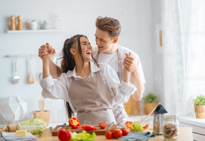 Влюбленная пара готовит правильную еду