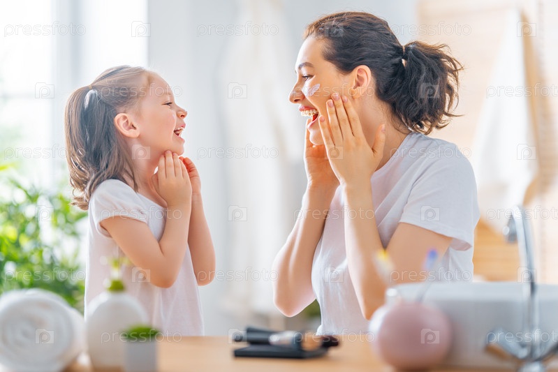 Мать и дочь ухаживают за кожей