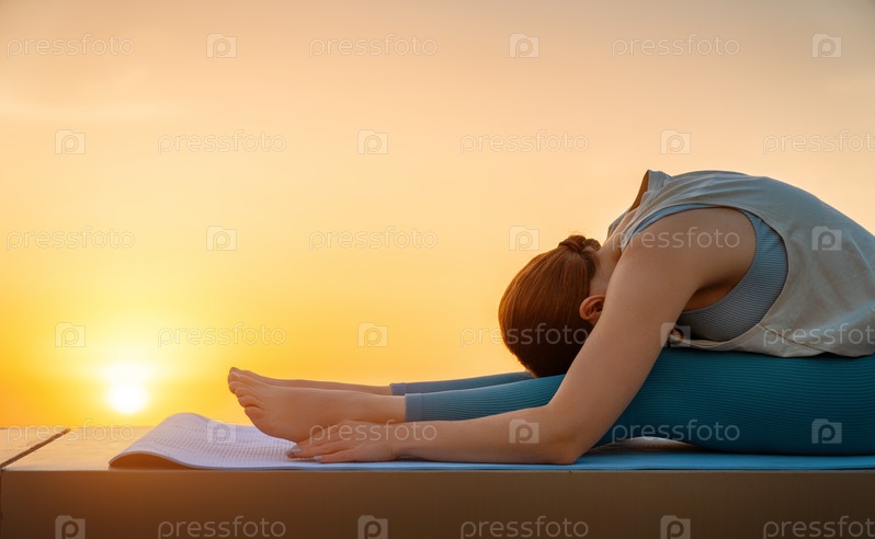 Спортсменка занимается йогой