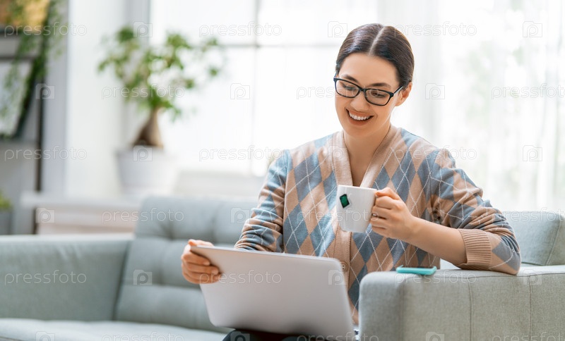 Женщина работает на ноутбуке