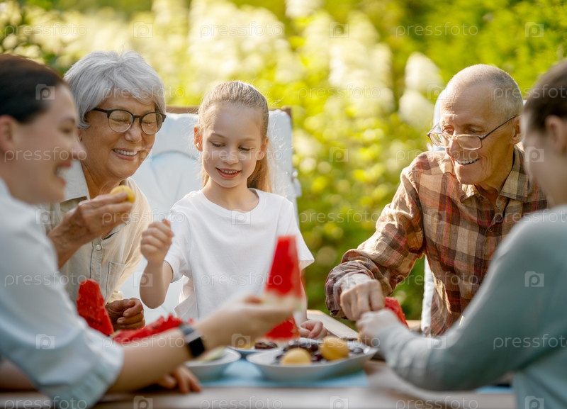 Семья проводит время вместе летним утром