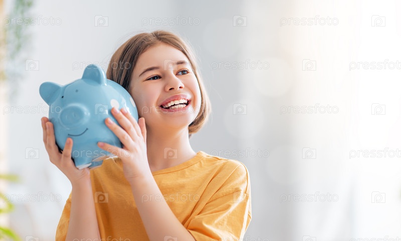 Счастливая девочка с копилкой