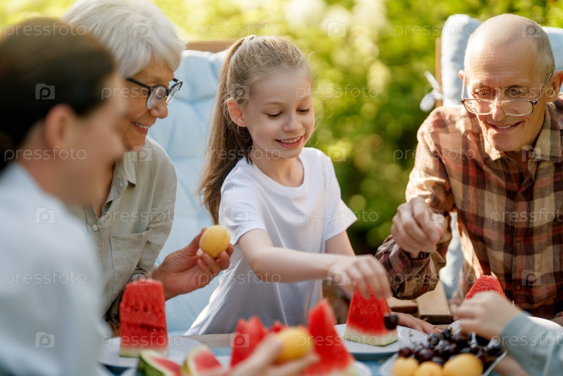 Семья проводит время вместе летним утром