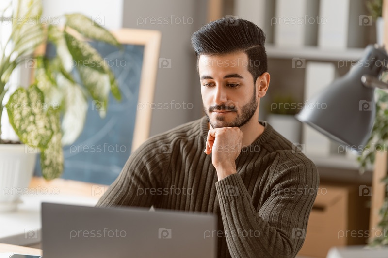 Мужчина работает дома за ноутбуком