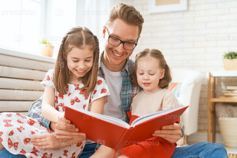 Отец читает книгу своим дочерям