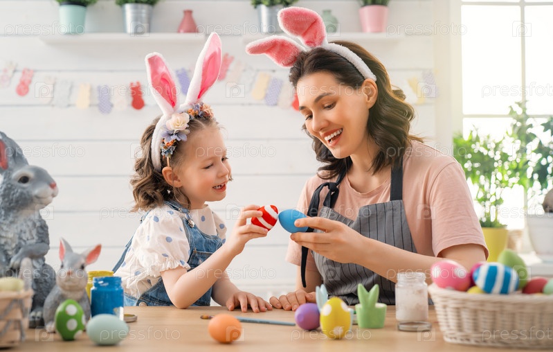 Счастливая семья готовится к Пасхе