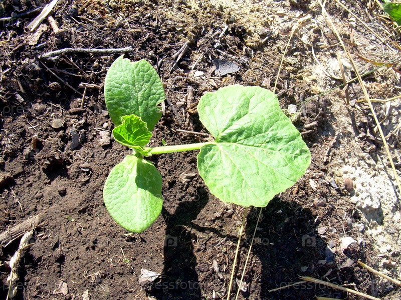 Рассада тыквы, высаженная на гряду