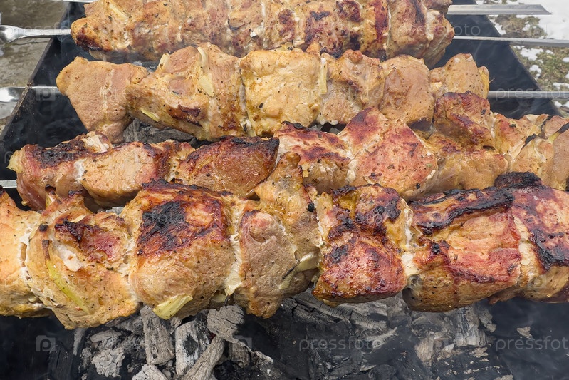 Шашлык жарится на гриле