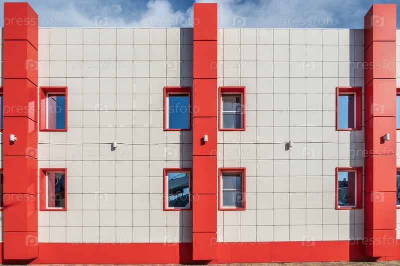 Современное здание демонстрирует поразительный дизайн с красными и серыми стенами