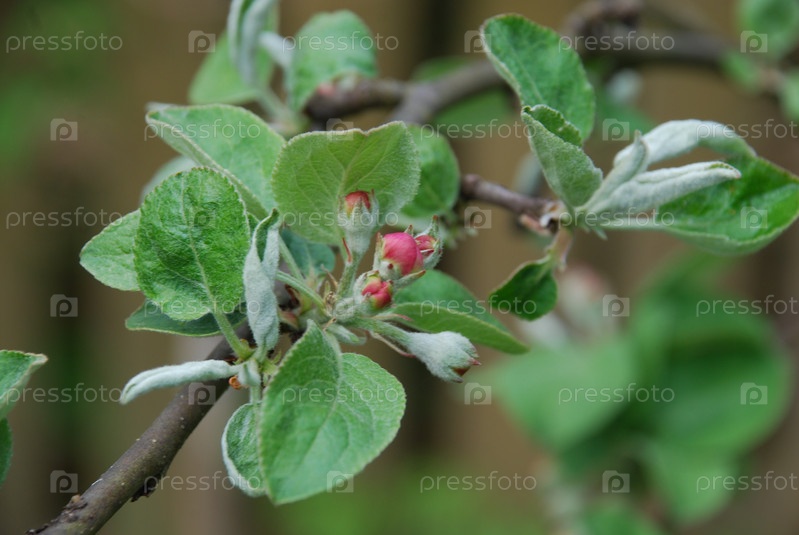 Только что распустившиеся цветы яблони