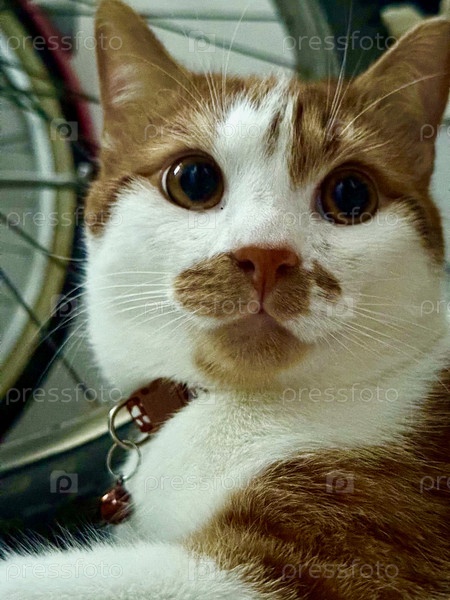 Кошачья морда. Рыже-белый кот. Крупный план