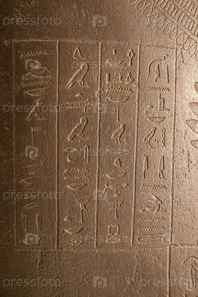 Египетские иероглифы на камне в гробнице крупным планом